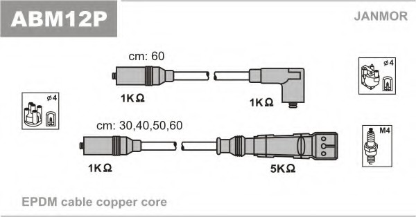 JM-ABM12P_к-кт проводов! \ VW Golf II/Passat 1.6/1.8 84-97 JANMOR (Польша) ABM12P