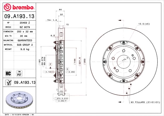 Тормозной диск BREMBO (Германия) 09A19313