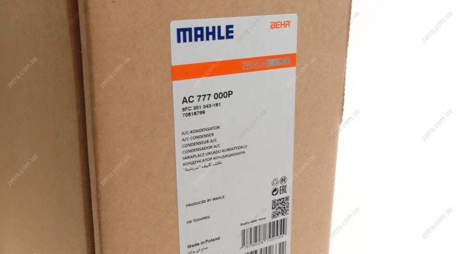 Радiатор кондицiонера VW TOUAREG MAHLE AC 777 000P