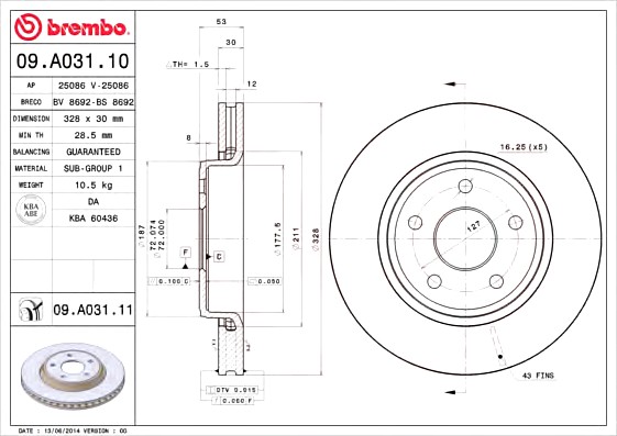 Диск тормозной BREMBO (Германия) 09.A031.10