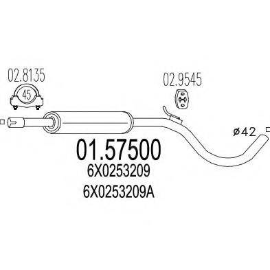Середня частина вихлопної системи (Резонатор) MTS(Италия) 01.57500