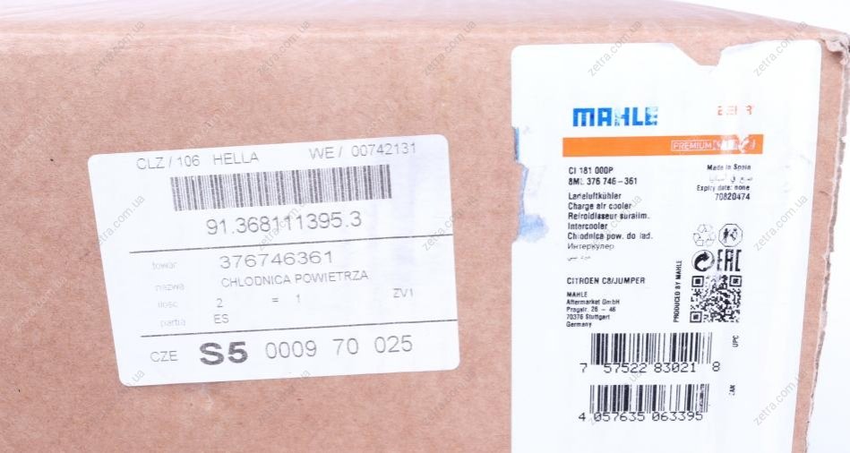 Інтеркулер CITROEN C8/JUMPER/PEUGEOT MAHLE CI 181 000P